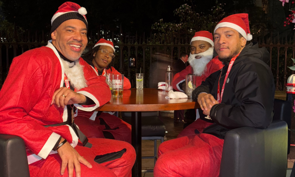 We began our journey as a team travelling to central London by tube (already in our Santa ‘fits) and although we may have received a few laughs from onlookers, that didn’t stop us in our quest to take on the Santa In The City 4K run in Paternoster Square.
